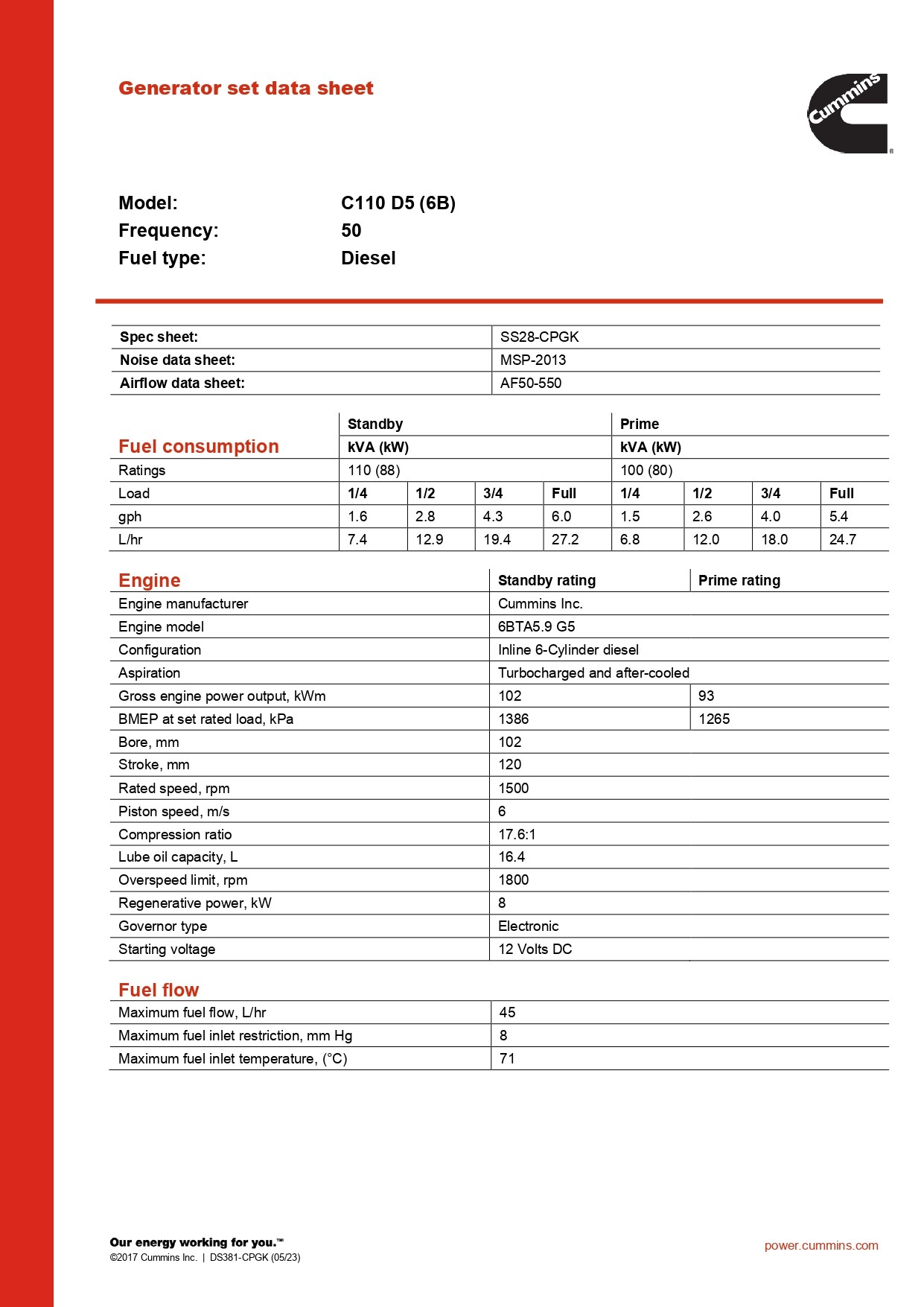 Cummins Power C110 D5 (6B) 110 kVA дизель-генератор (Inline 6-Cylinder diesel)