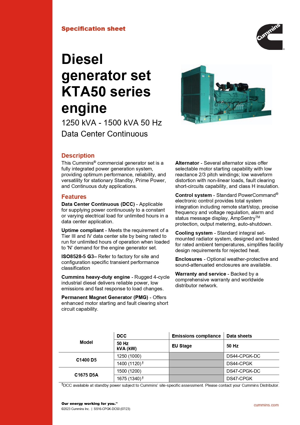 Cummins Power C1400 D5 1400 kVA дизель-генератор (V12 cylinder)