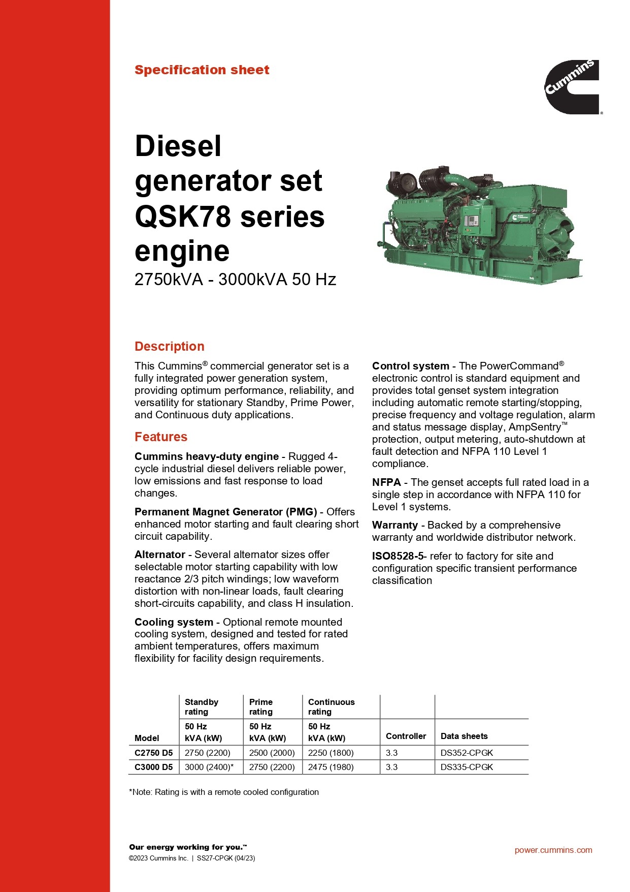 Cummins Power C3000 D5 QSK78 3000 kVA дизель-генератор (V18 cylinder)