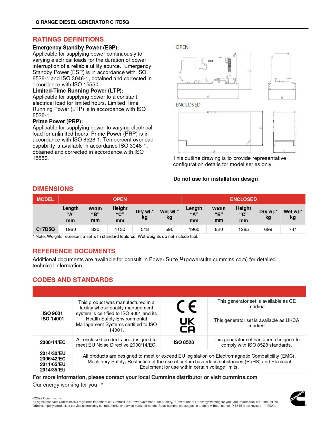 Cummins Power D-6615 C17D5Q 16,5 kVA дизельный генератор