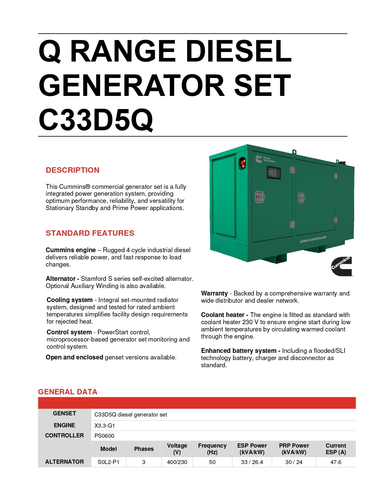 Cummins Power D-6618 C33D5Q 33 kVA дизель-генератор