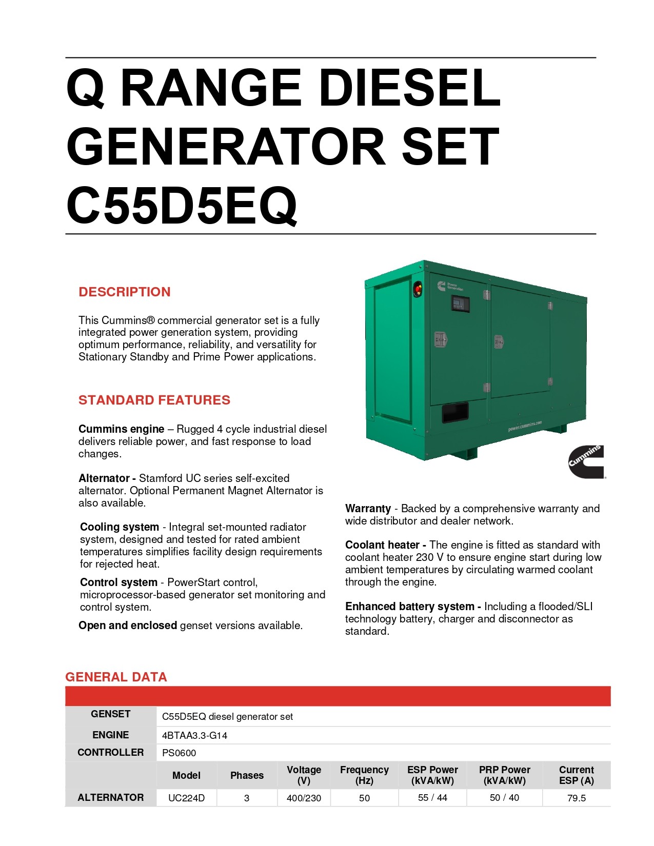 Cummins Power D-6621 C55D5EQ 55 kVA дизель-генератор