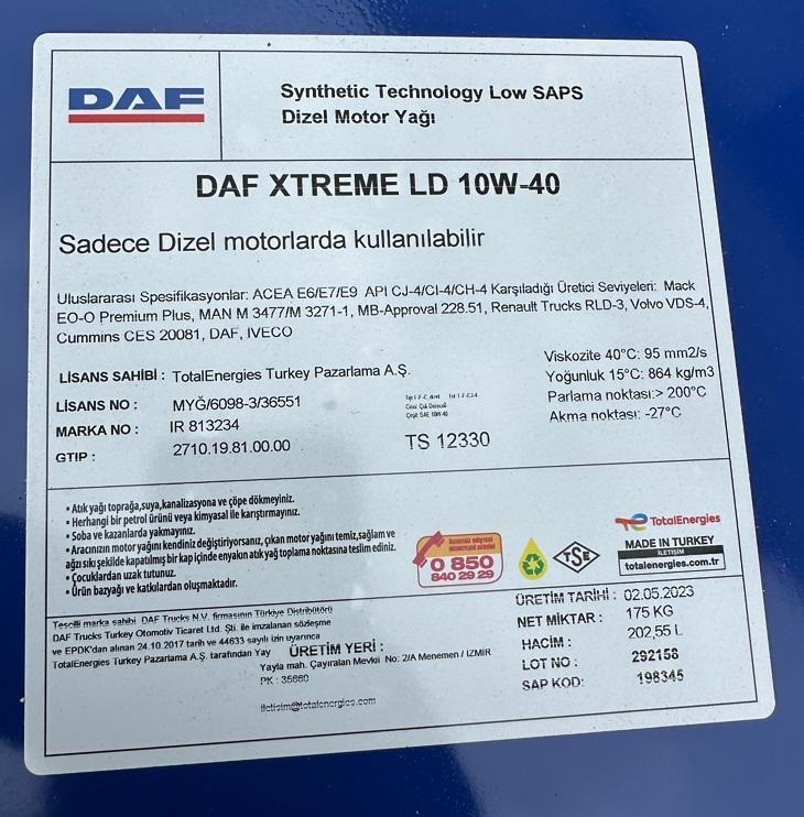 198345 DAF Xtreme LD Моторное масло 10w-40 (бочка 202л)
