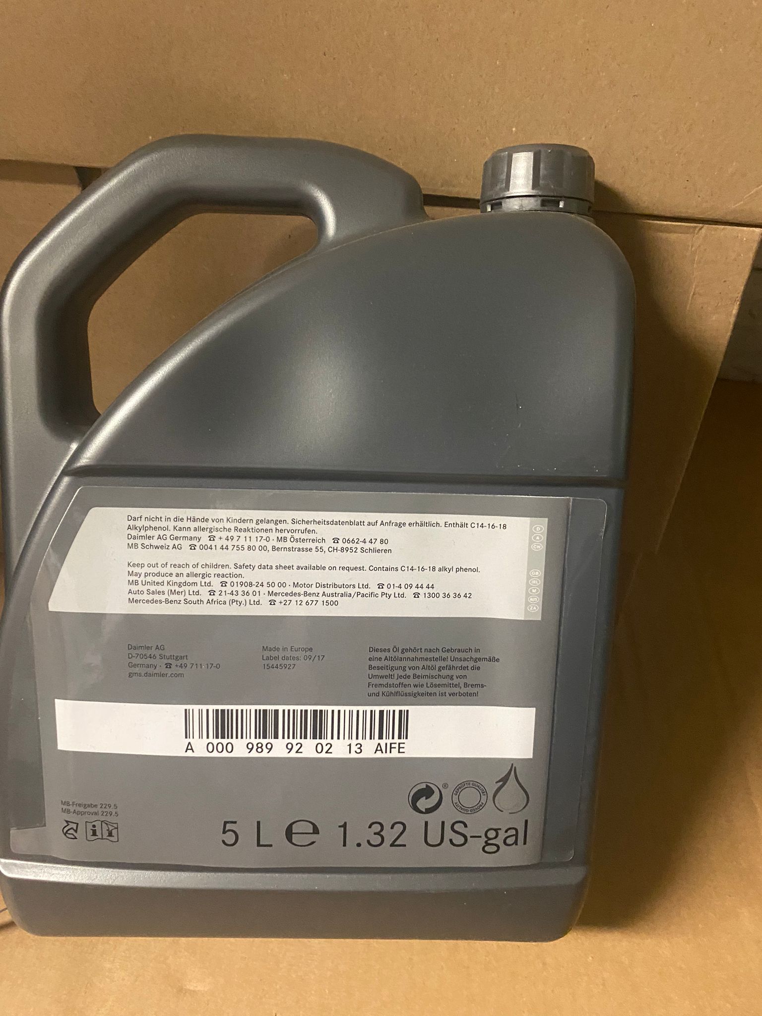 MERCEDES-BENZ A000989920213 Genuine 5w-40 MB 229.5 (5л канистра)
