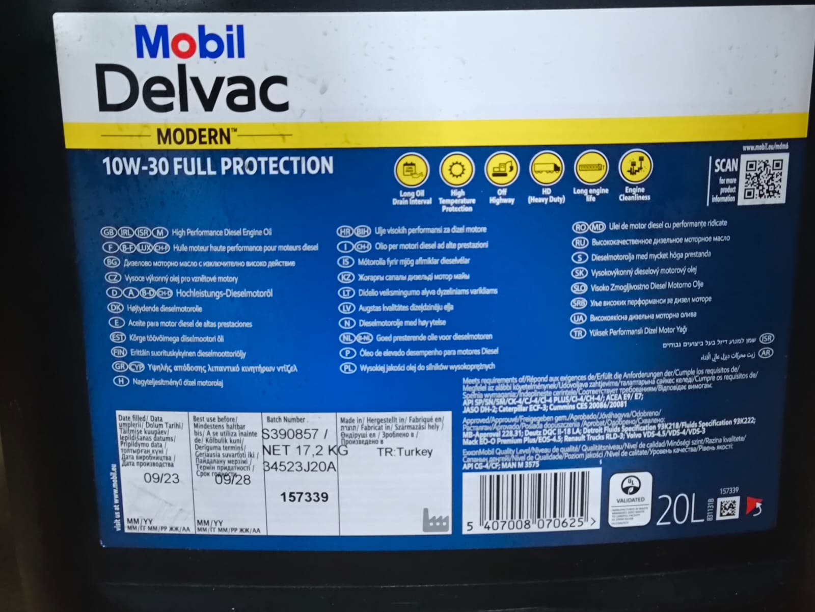 157339 MOBIL DELVAC Modern 10w-30 Full Protection (канистра 20л) |