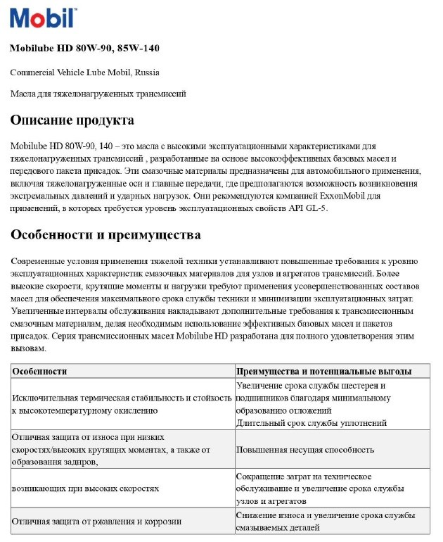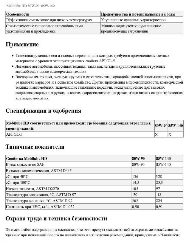 Mobilube HD соответствует или превосходит требования следующих отраслевых спецификаций :