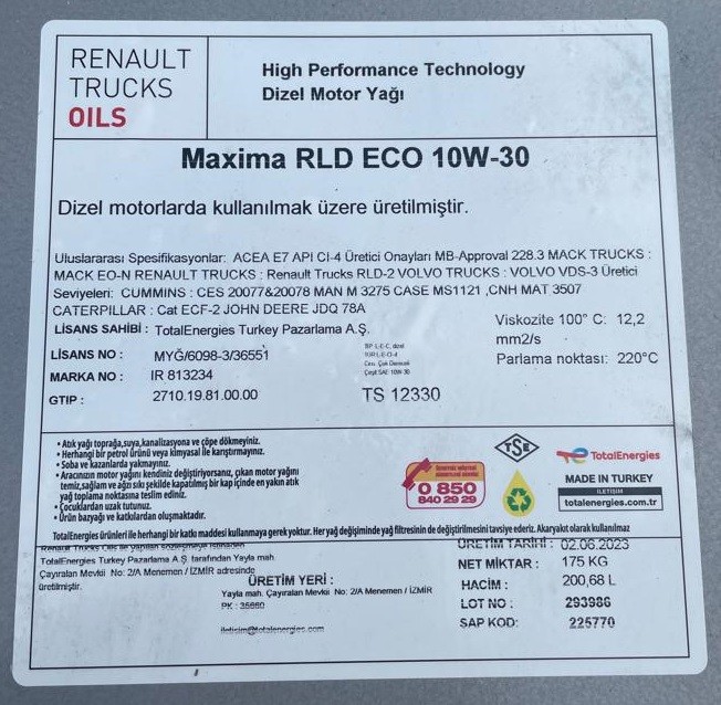 7485135454 RENAULT TRUCKS Maxima RLD ECO 10w-30 (бочка 200л) |