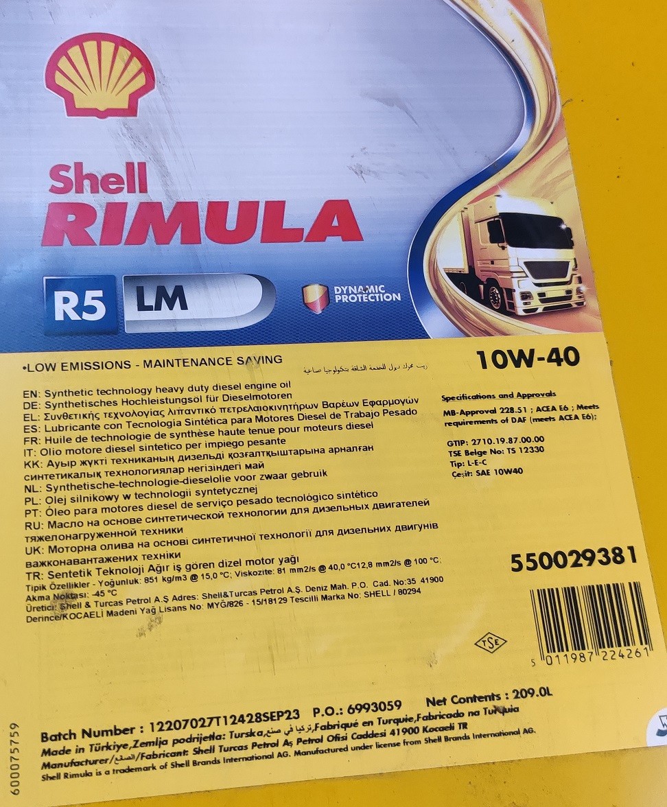 Shell Rimula R5 LM 10W-40 применяется в европейских двигателях тяжелой техники, где необходимо соответствие смазочного материала требованиям ACEA E6.