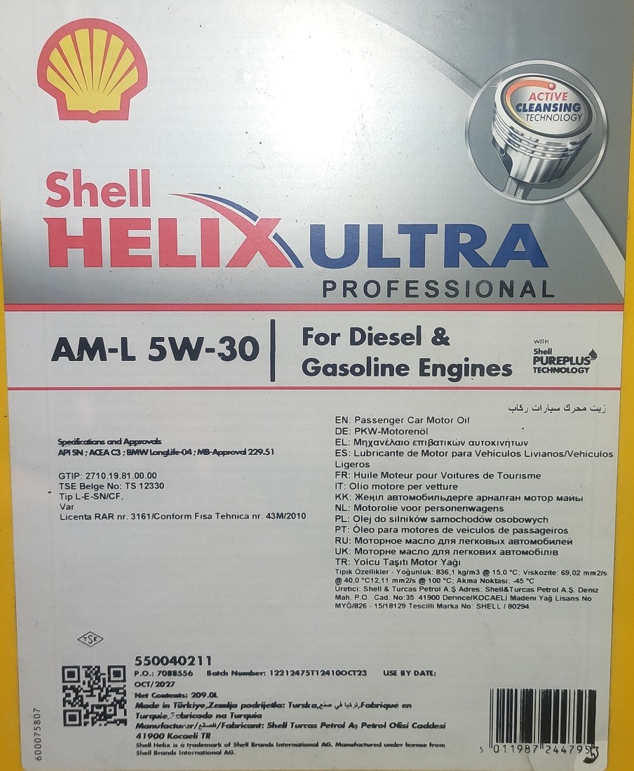 Особенности Shell Helix Ultra Professional AM-L 5W-30: