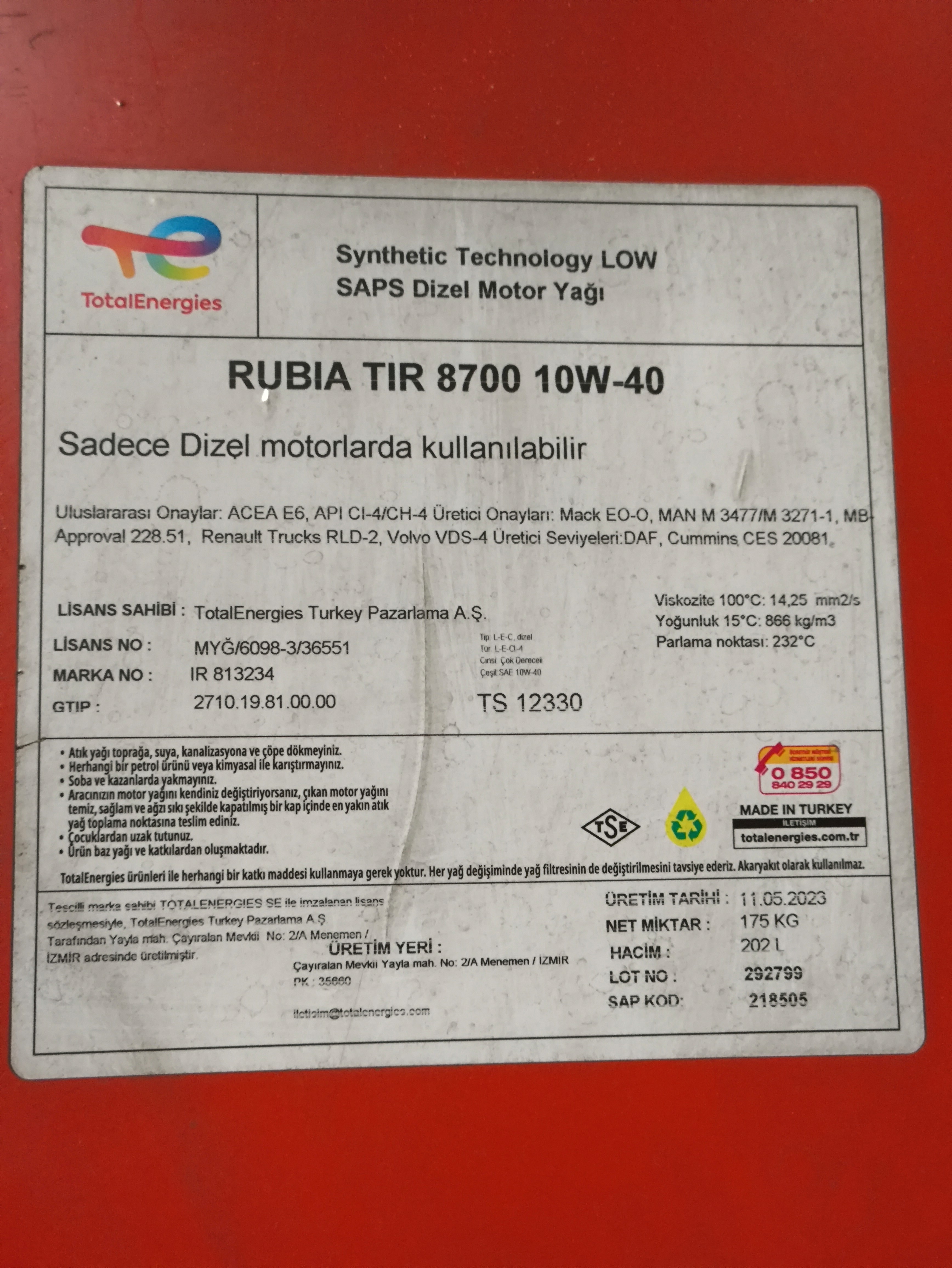 218505 TOTAL RUBIA TIR 8700 Моторное масло 10w-40 (бочка 202л)