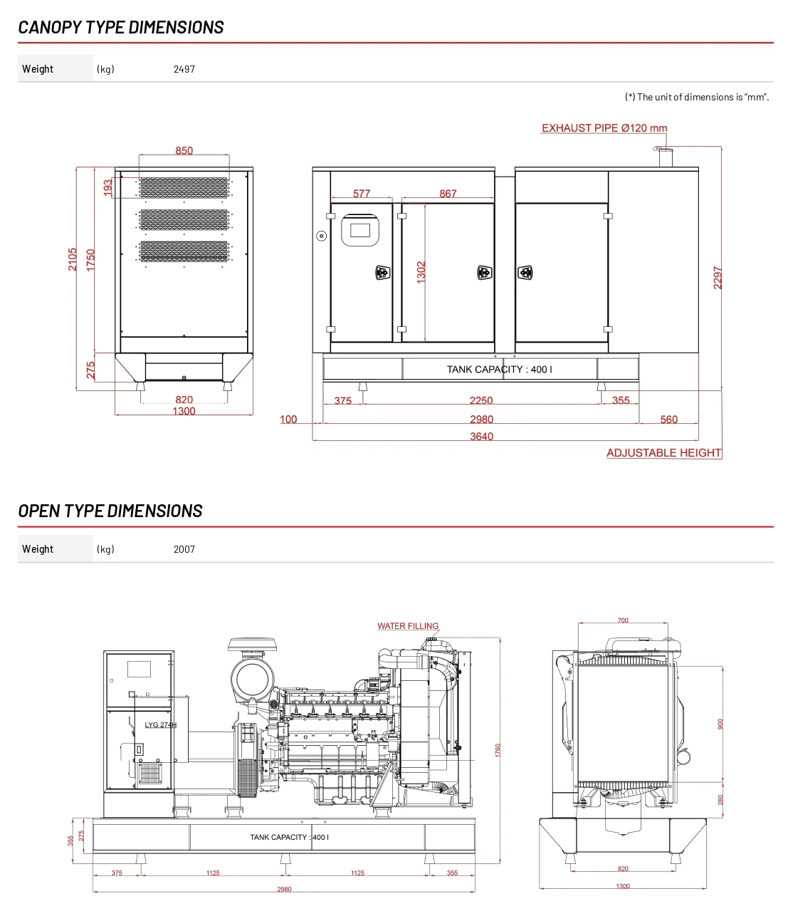 205 kVA, 164 kW, 50 Hz