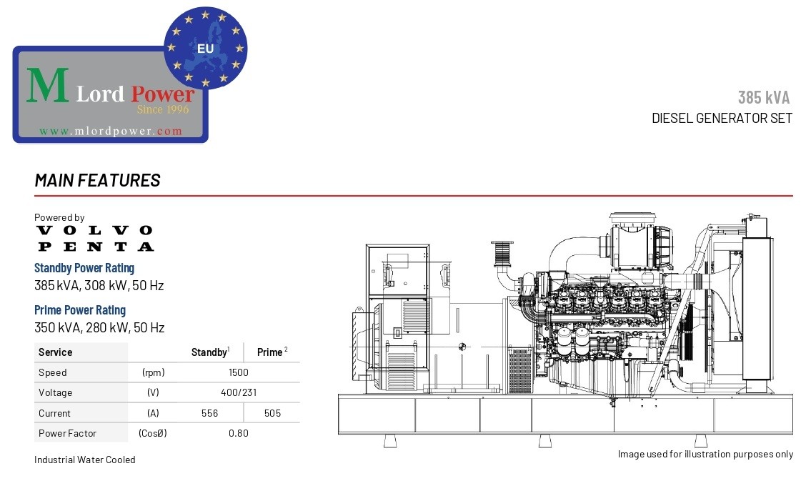 385 kVA, 308 kW, 50 Hz