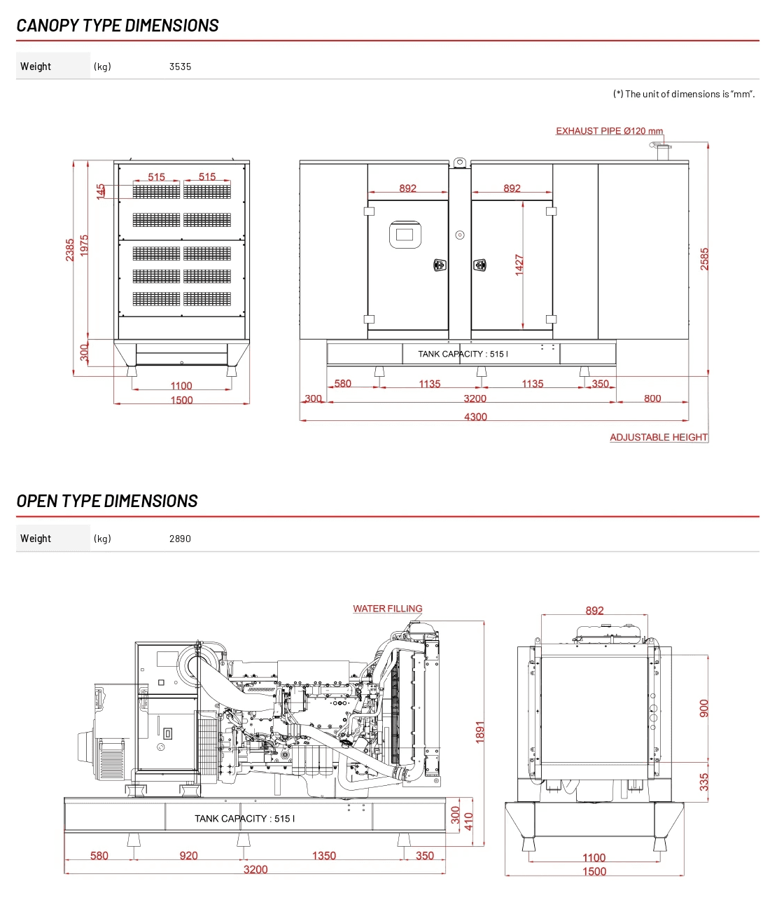 350 kVA, 280 kW, 50 Hz