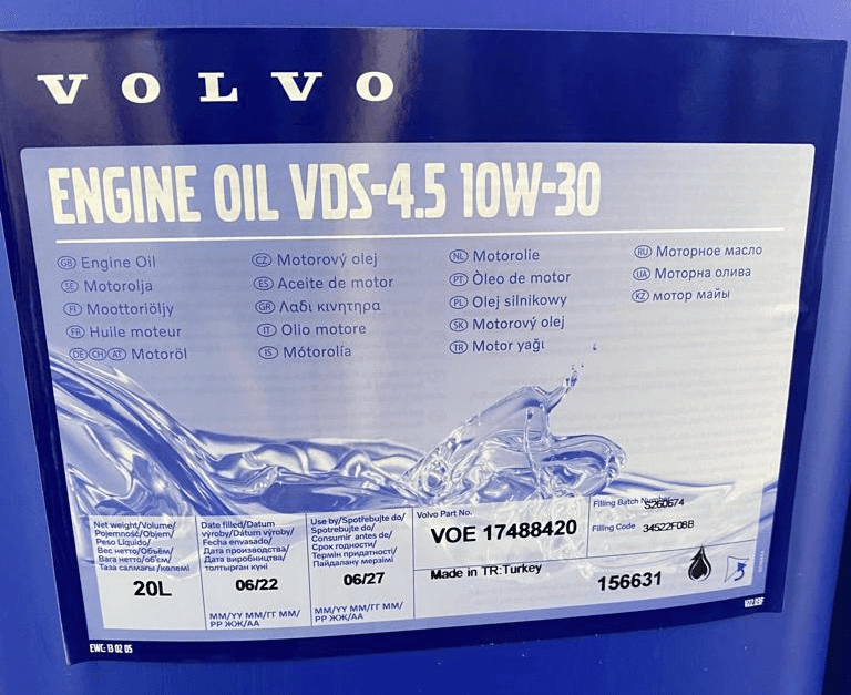 Синтетическое моторное масло Volvo VDS-4.5 10W-30 разработано в 2016 году для дизельных силовых агрегатов грузовых и коммерческих автомобилей.