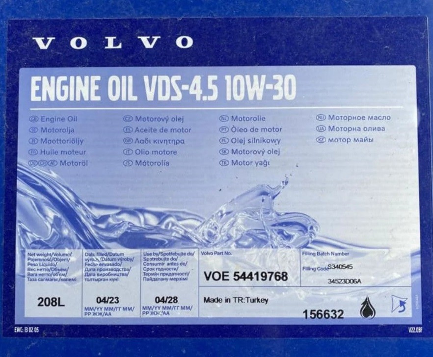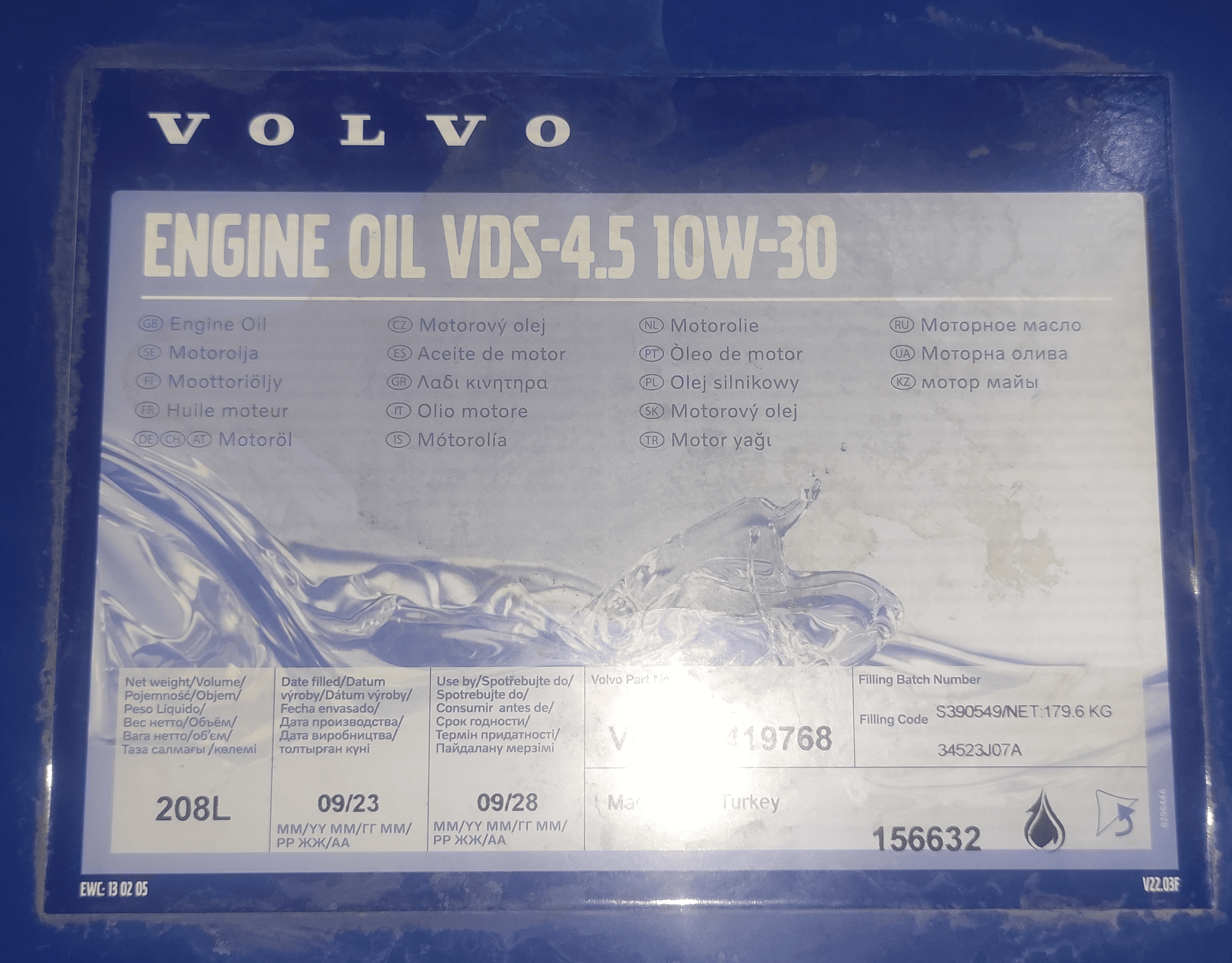Синтетическое моторное масло Volvo VDS-4.5 10W-30 разработано в 2016 году для дизельных силовых агрегатов грузовых и коммерческих автомобилей.